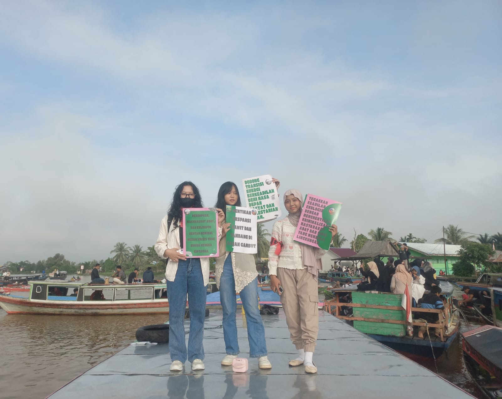 - Narasi Perempuan melakukan kampanye Draw the Line di Pasar Terapung Lok Baintan, menolak ekspansi sawit dan tambang, serta menyerukan transisi energi berkeadilan.